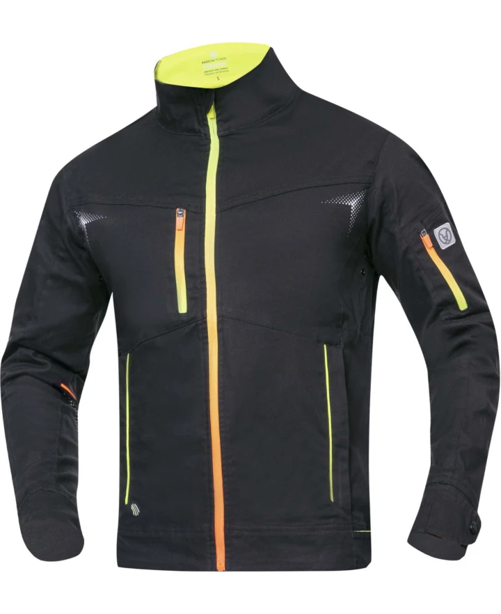 je vybavená priebežným zapínaním na zips s krytkou brady, 1 zipsovým náprsným vreckom, 1 zipsovým vreckom na ľavom rukáve, 2 zipsovými bočnými vreckami