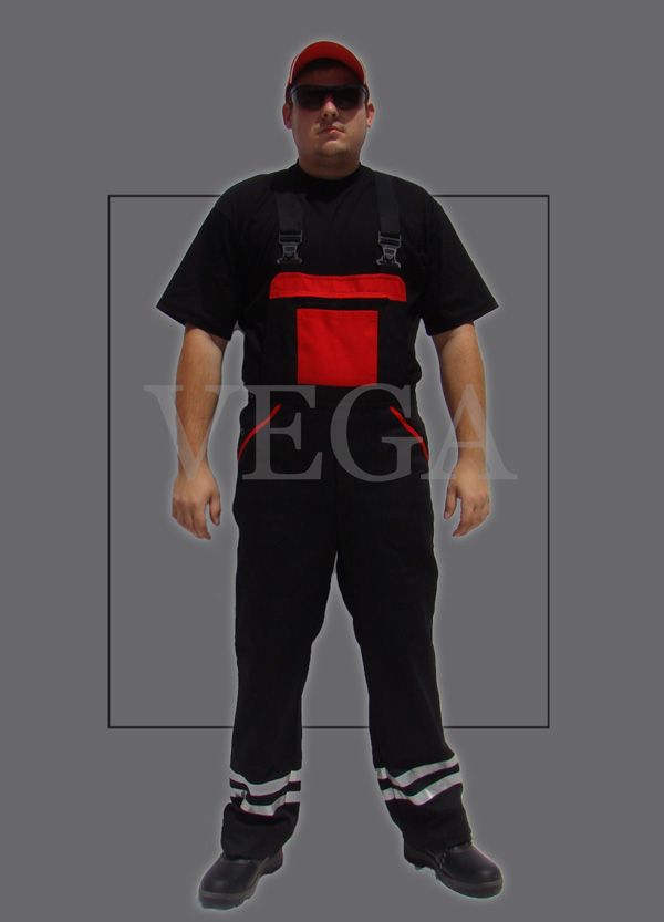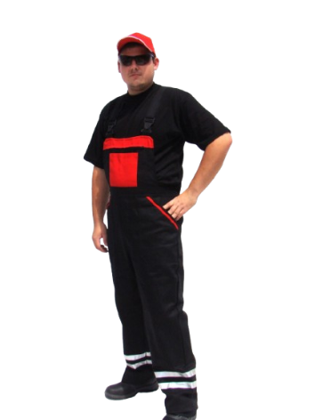 Montérkové nohavice na traky 2 rady reflex čierno-červené