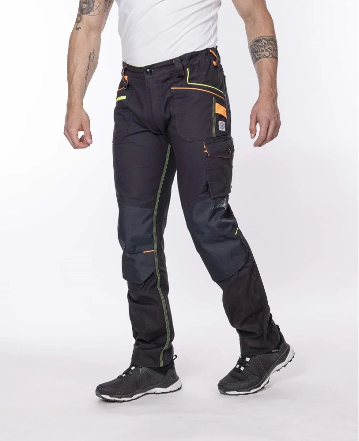 Strečové bavlnené montérkové nohavice do pása zo špeciálneho materiálu Amalytton®, ktorý vyniká zvýšenou pevnosťou a hladkým, jemným povrchom