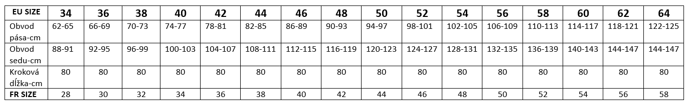 Veľkostná tabuľka ženy ARDON